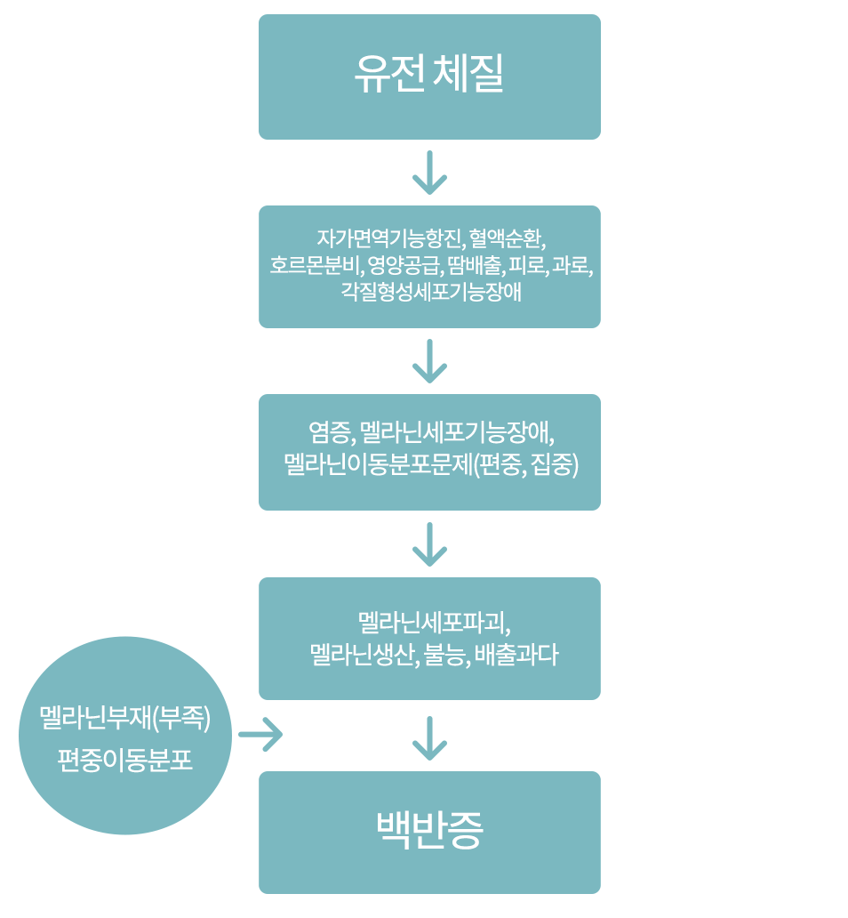 *백반증 크기,부위,건강상태에 따라 멜라닌생산,이동분포,배출방지이론적용