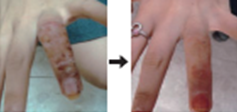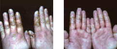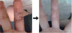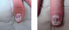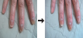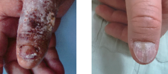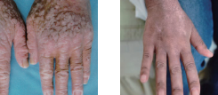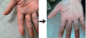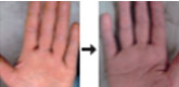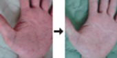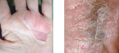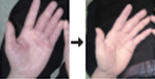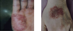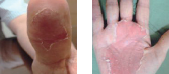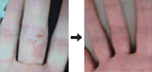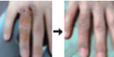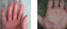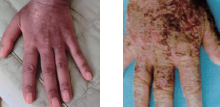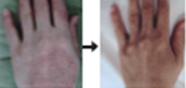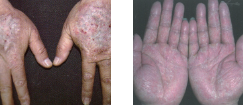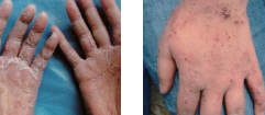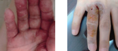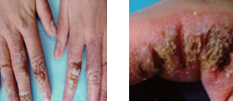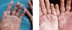손등, 손바닥, 손가락에 붉은반점, 진물(건조), 부종, 가려움이 나타나는 질병