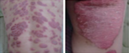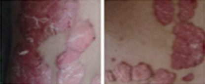 피부에 붉은반점,구진,인설(딱지),각질의 염증증상이 나타나는 질병