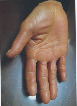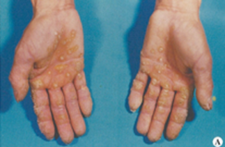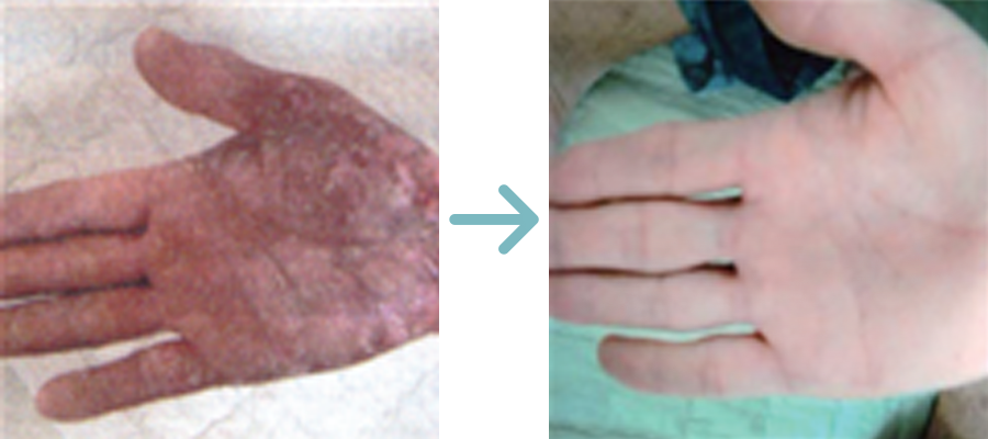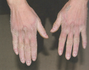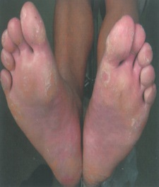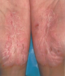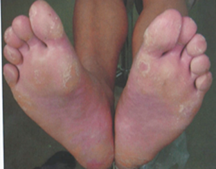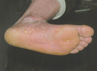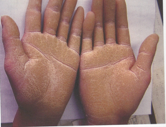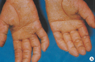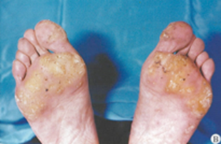 손바닥, 발바닥에 각질이 과도하게 두텁게 형성되는 증상