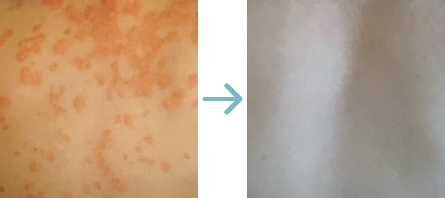 약한 적반(붉은 반점), 구진, 소양증, 두드러기가 있다. 이러한 증상이 특히 월경 후에 심하며 평소 월경량이 적다. 과다 출혈경험이 있거나 현훈, 숨차고 기운이 없고 얼굴이 창백하다. 뼈근육이 약하고, 허리 무릎이 통증이 있고 시리다.