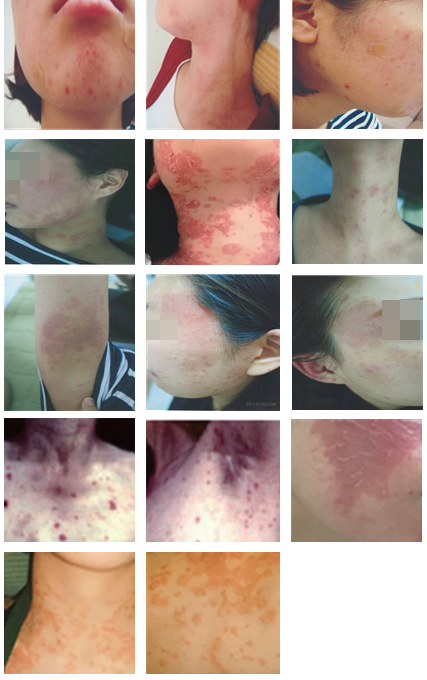 홍반형, 두드러기형, 자반형, 가려움형, 여드름형