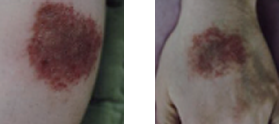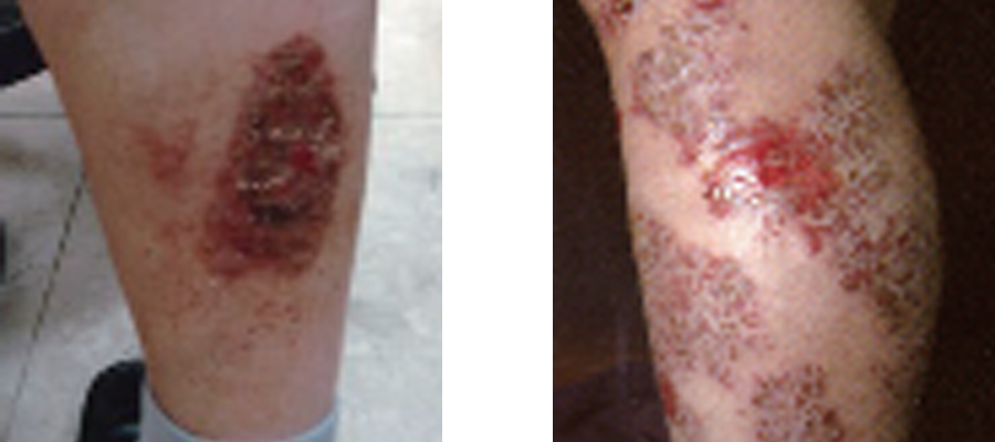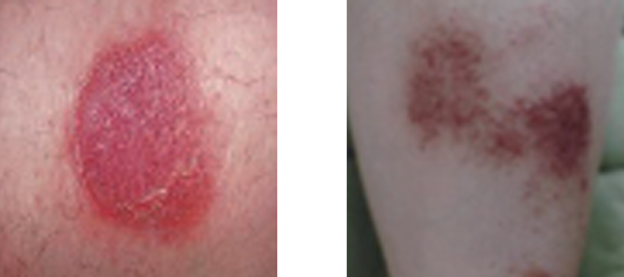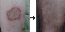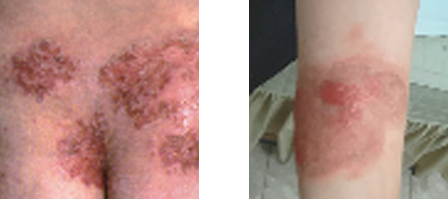 동전모양의 붉은반점, 진물, 건조, 가려움, 부종의 염증증상이 피부에 나타나는 질병