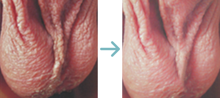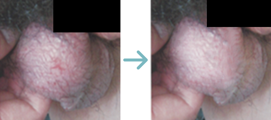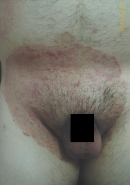 붉은반점,진물(건조),가려움증,부종의 염증증상이 음낭(남성생식기)및 그 주변피부에 나타나는 질병