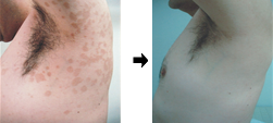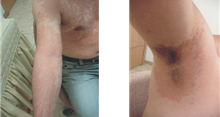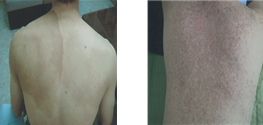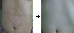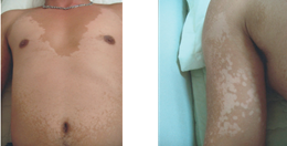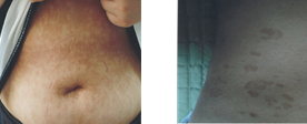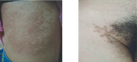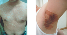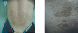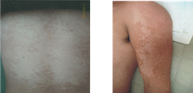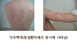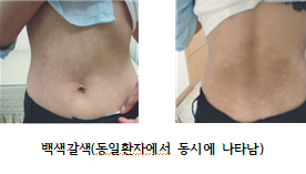 *가장 먼저 생긴 어루러기는 백색, 중간은 갈색, 최근은 자주색