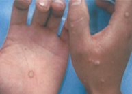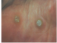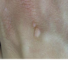 인유두종바이러스 감염으로 피부, 점막에 표피과다증식이 일어나 표면이 매끄럽지 않고 1cm 전후의 크기로 솟아나는 구진 형태의 증상